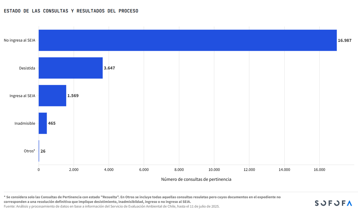 Solo 1.569 consultas resultan en “Ingreso” efectivo al SEIA, mientras que 465 son declaradas “Inadmisibles”.